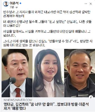 지들 내부정적 제거하려고 국힘에서 만들어낸조작 장부를 민주당에서 털어도 무혐의 나온게이준석 성상납임 아무것도 안털어도 전과4범 대통령하고는 격이 다름니들이 그렇게 좋아하는 정상vs비정상의 영역이지 이게범죄자가 국가 최고자리에 올라가는거 자체가얼마나 진영논리에 찌들어 있는 좀비 새기들이 많은지 나오는 대목이다