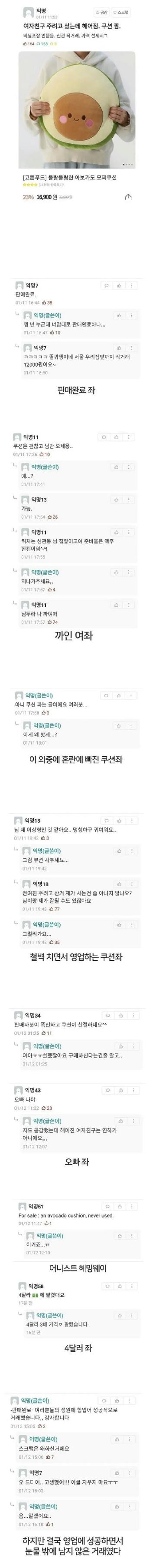 [엽기유머] 여자친구 주려고 산 쿠션 팝니다 ~