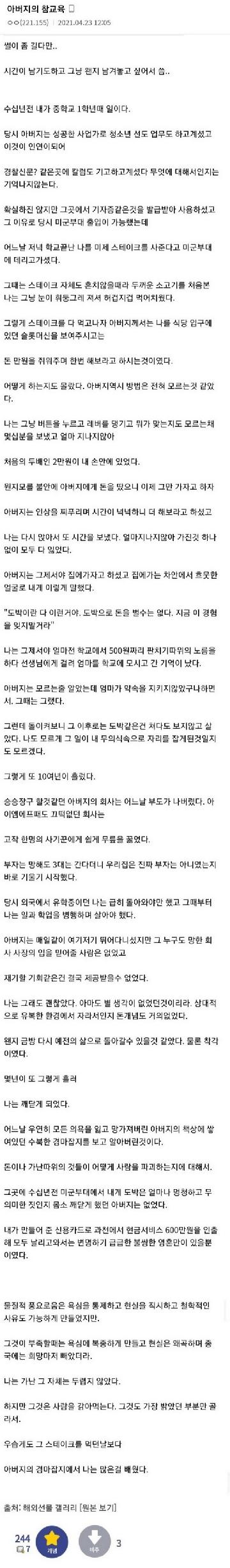 [엽기유머] 해외선물갤의 현명하셨던 아버지
