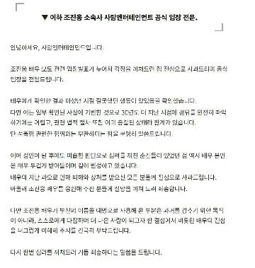 배우 조진웅, 소년범 출신 의혹 일부 인정…“성폭행은 무관” [전문]